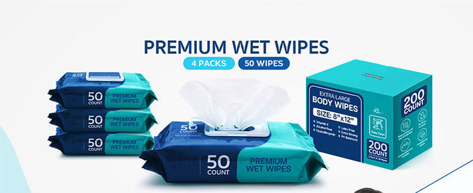 工場OEMカスタマイズ 50枚 8インチ x 12インチ アロエベラ、ビタミンE配合 大人用ウェットティッシュ